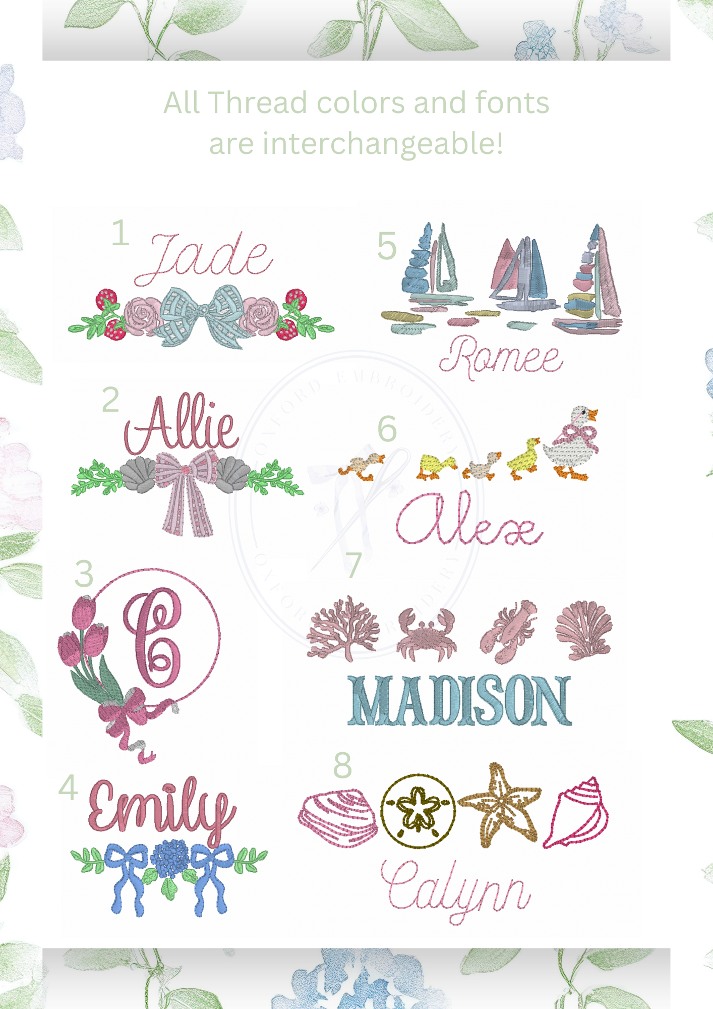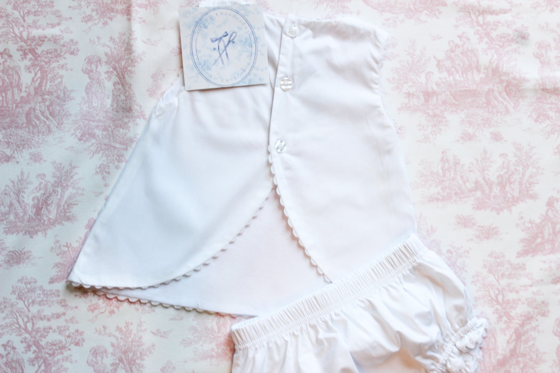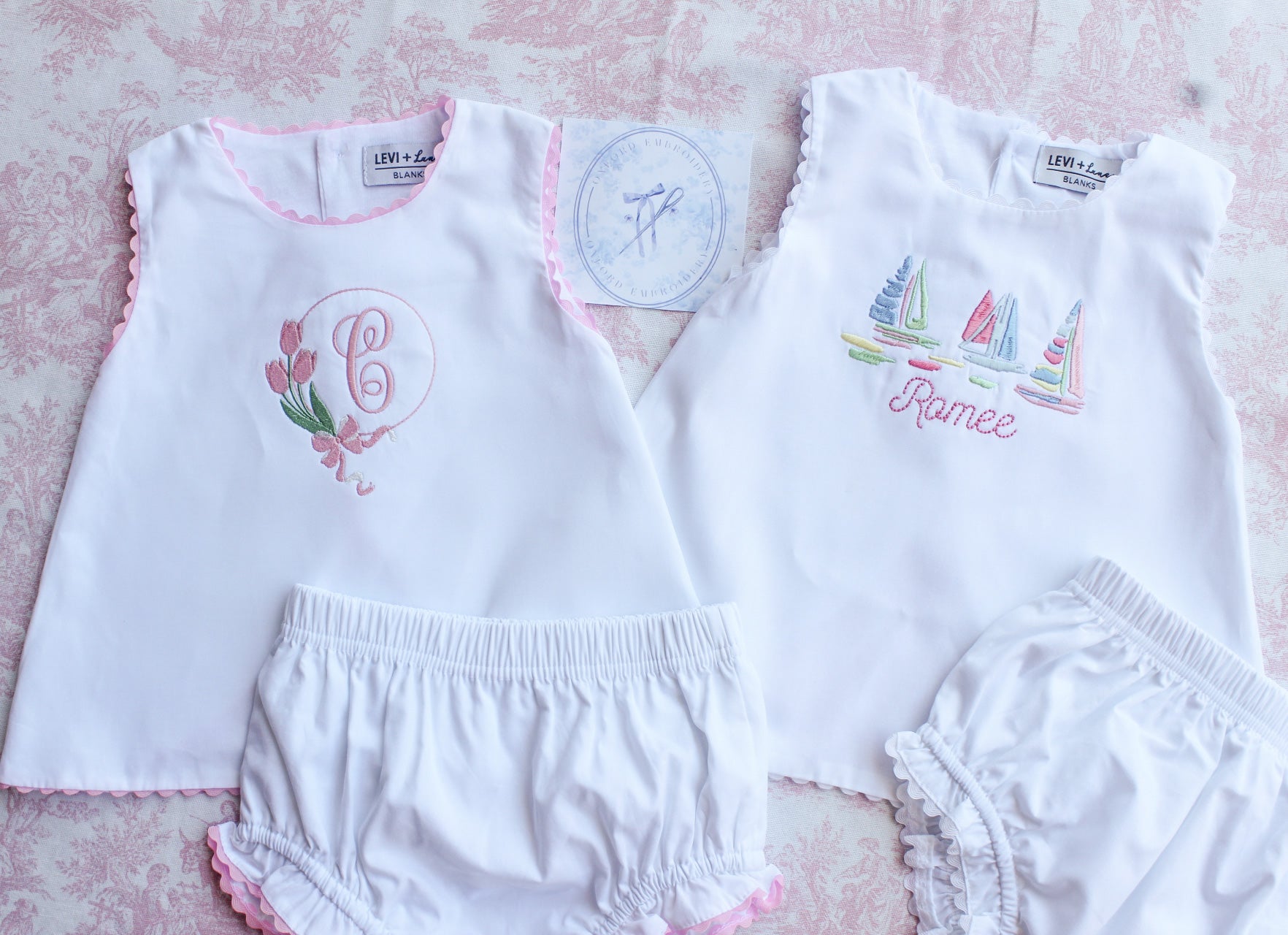 The perfect set for Summer, especially paired with a cute monogram or design! These sets come with white or pink ric-rac trim. They are lined with soft woven cotton and fit true to size.